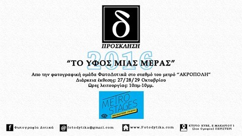 02 Published 16 Νοεμβρίου, 2016 at 480 × 270 in ‘ΕΚΘΕΣΗ «ΤΟ ΥΦΟΣ ΜΙΑΣ ΜΕΡΑΣ» ΣΤΟ ΣΤΑΘΜΟ ΤΟΥ ΜΕΤΡΟ ΑΚΡΟΠΟΛΗ ← Προηγούμενο Επόμενο →